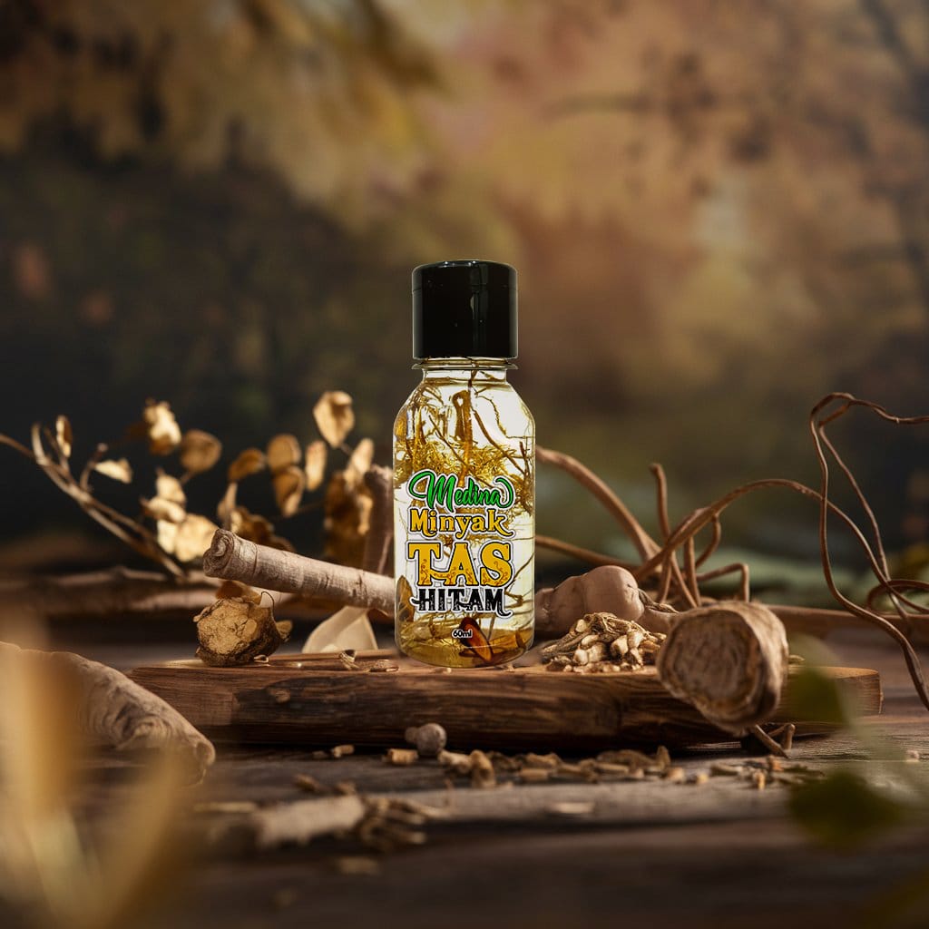 Minyak Tas Hitam diformulasikan menggunakan bahan semula jadi yang telah lama digunakan dalam perubatan tradisional. Gabungan unik ini bukan sahaja melegakan sakit, tetapi juga menyuburkan kulit dan meningkatkan kesihatan sendi serta saraf.