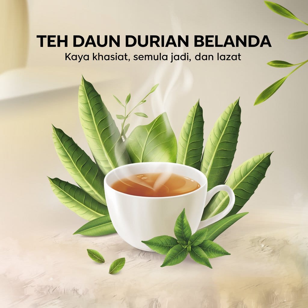 Teh Daun Durian Belanda diformulasikan dari ramuan herba terpilih di antaranya Daun Durian Belanda dan Stevia Gred A.